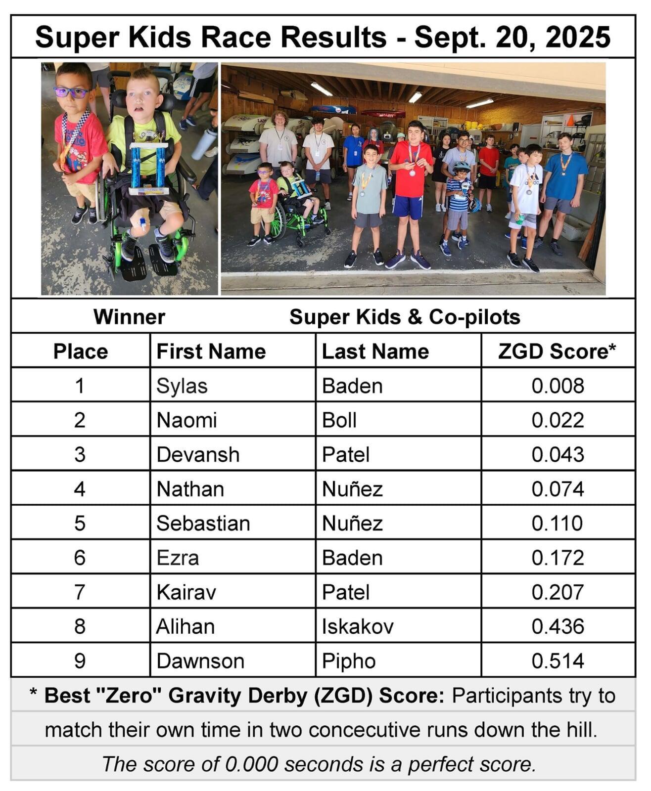 Sept. 20 - Super Kids Race Results (image link)
